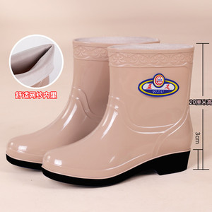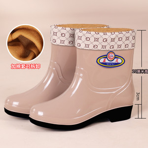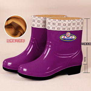 女性用レインブーツ、ベルベットの暖かいレインブーツ、滑り止めの大人用レディースウォーターシューズ、キッチンウォーターシューズ、綿ゴム靴