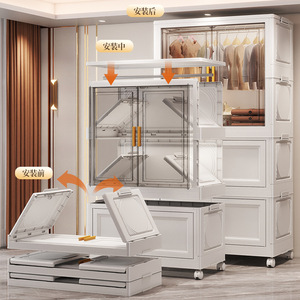 折りたたみ設置不要の収納キャビネット家庭用収納キャビネット多層衣類収納キャビネット寝室ライト高級ワードローブキャビネット