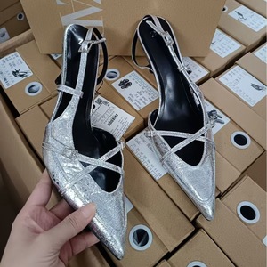 ZA新型2024夏の対外貿易ファッションクロスバックル飾りの先の高いハイヒールのサンダルの英倫風ミュラーの女性靴