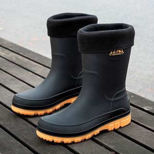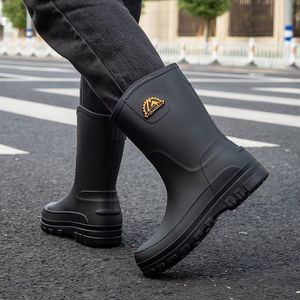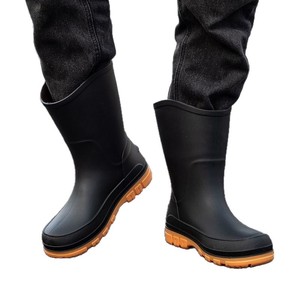 メンズレインブーツ、ミドル丈、滑り止め、防水、ロング丈、厚底、キッチン、工事現場、耐摩耗性、軽量、耐久性、耐油性