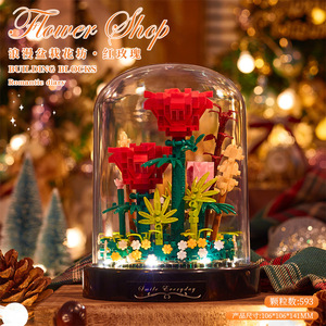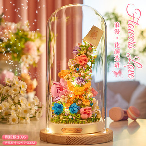 *ロマンチックな時間—ピンクのバラ + ディスプレイカバー [ウォームランプ付き]*