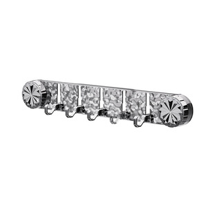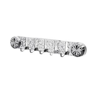 ドアの後ろのバスルームの壁に穴を開けずに吸盤を長く並べた収納フックと棚、5連のシームレス粘着フック