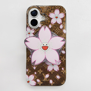 日本と韓国のライトラグジュアリーフラワー磁気ホルダーiPhone16Promaxトレンディブランド14アートApple15携帯電話ケースに適しています