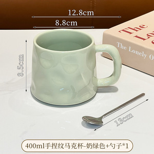 @400ml 手絞りマグカップ - ミルクグリーン + スプーン ₪