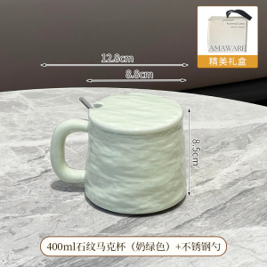 @400ml ミルクグリーンストーンマグカップ - ギフトボックス ₪
