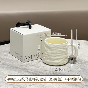 @400ml ミルクイエロー ストーン マーク カップ - ギフト ボックス ₪