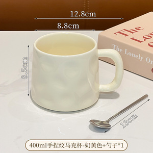 @400ml 手絞りマグカップ - クリーミーイエロー + スプーン ₪