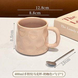 @400ml 手絞りマグカップ - ミルクコーヒー色 + スプーン ₪