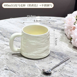 @400ml ストーンマーカーカップ - クリーミーイエロー + スプーン ₪