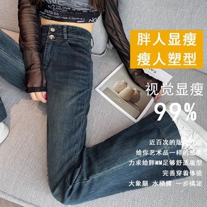 微喇牛仔裤女春秋2025年新款高腰显瘦直筒小个子阔腿喇叭马蹄裤子