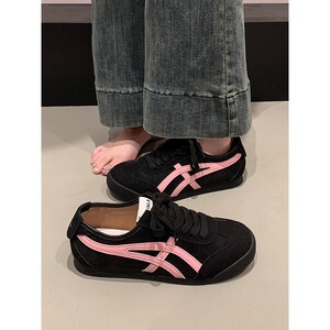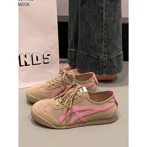 ネットセレブの道徳訓練靴2025春新作フラットレースアップフォレストシューズ韓国風カラーブロックソフトソールスポーツカジュアルスニーカー