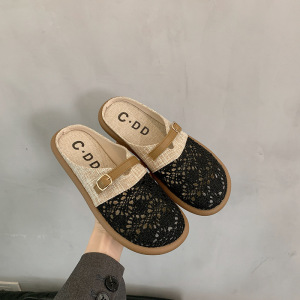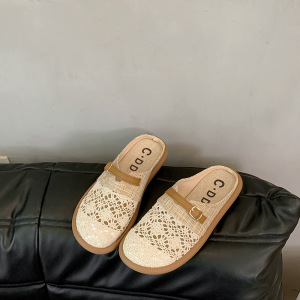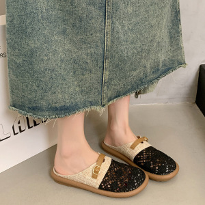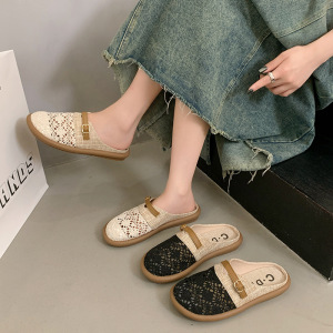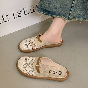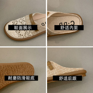 女性が外で履くためのリネンつま先ハーフスリッパ 2025 新しい夏スタイル多用途中空通気性サンダル片足スリッパ