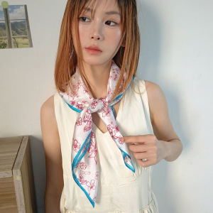 ins インターネットセレブ 春夏 シルクスカーフ 小さな正方形のスカーフ 女性用 旅行用 多用途 写真撮影用 シルクスカーフ 正方形のスカーフ ヘッドスカーフ 海辺での休暇 チューブトップ
