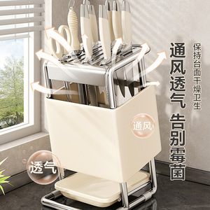 ステンレス鋼イン斜めナイフホルダーデスクトップ + ドリルプレート + 箸バレル
