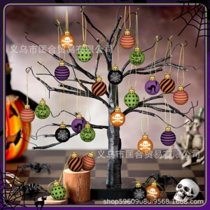 ハロウィンツリーデコレーションスパイダーとコウモリの網模様の耐久性のある木製ハンギングデコレーション24個、ホームオフィス中庭ハンギング用