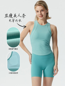2025 春夏新作スポーツベスト女性のスレッドビューティーストリップタイトヨガウェア固定胸パッドノースリーブベスト