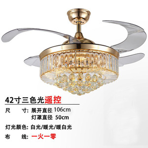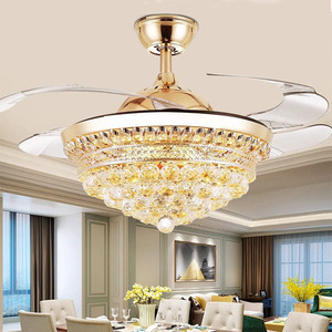 国境を越えた対外貿易ヨーロッパ式水晶ファンランプ客間レストラン寝室軽贅沢ファンランプ家庭用知能見えないファン