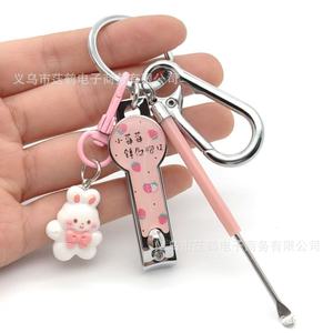 かわいいウサギのキーホルダー爪切り耳スプーンシンプルなキーセットペンダント女の子小さなイチゴはさみネイルロック
