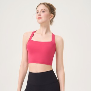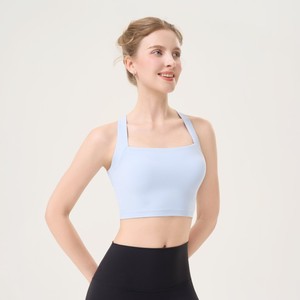 スクエアネック固定耐衝撃スポーツブラ女性のバッククロススポーツベストランニングプッシュアップヨガウェアフィットネスブラ