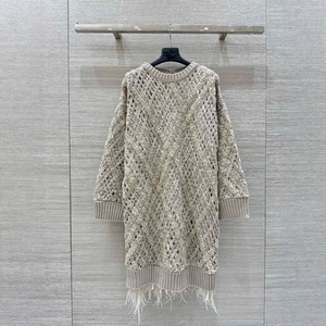 竿品25春夏新作重工珠片衝突色透かしスパンコールカシミヤプルオーバー長袖ニットセーター女