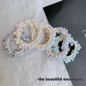 韓国版の新しいフォレストスタイルパールヘアバンドクリスタルゴムバンド女性のドーパミンポニーテールボールヘッドロープヘアロープ