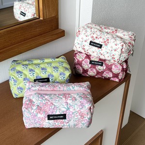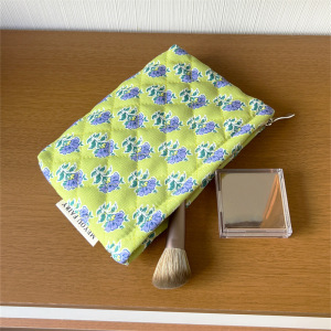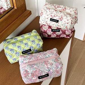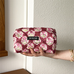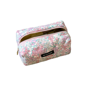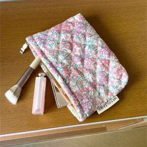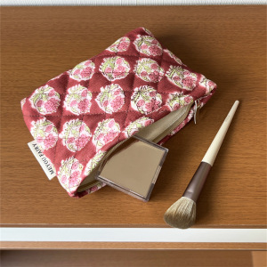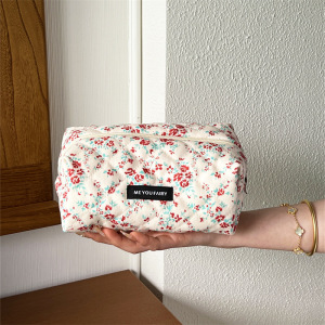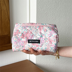キルティング綿入り花柄化粧品バッグ、小さな新鮮な花柄、高価値の大容量収納バッグ、便利な旅行用クラッチバッグ