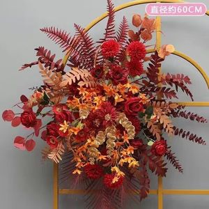 結婚祝いの大きいタイプの花を並べて絹の花の完成品の装飾をシミュレーションします。