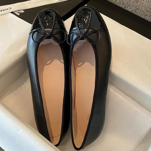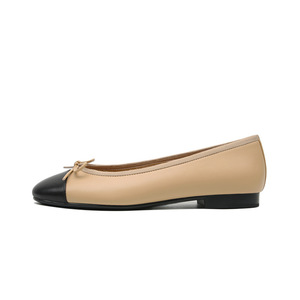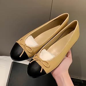 2025 新しい Xiaoxiangfeng 本革浅い口ラウンドトゥの靴女性のための多用途通勤カラーブロックリボンバレエシューズ女性のための