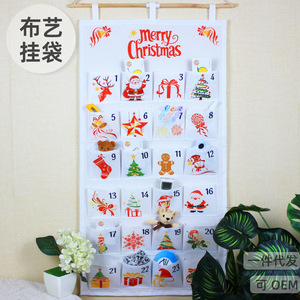 跨境圣诞节24格收纳挂袋墙挂式门宿床头收纳袋可折叠袜子储物挂袋