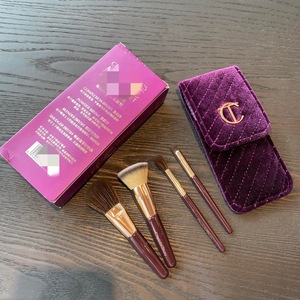 現物4本化粧ブラシセット高級チューリップブラシ動物毛携帯タイプpuバッグ