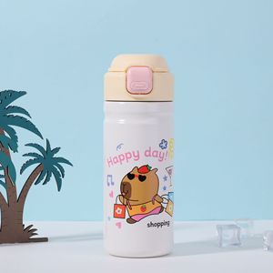 新しい高見えする男の子と女の子の人気のクロスボーダー漫画魔法瓶カップ、大容量、ポータブル屋外学生スナップバックルカップ
