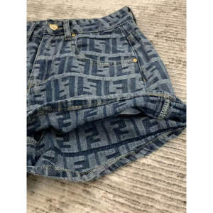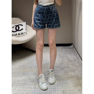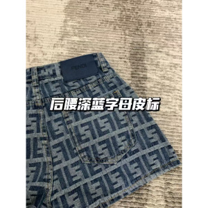 25の新しいマストハブレトロFFデニムジャカードショーツ、スリムフィットオールドフラワーパンツ、ストレートレッグホットパンツ、カジュアルで多用途