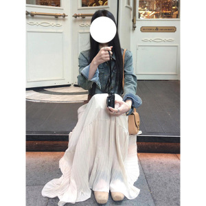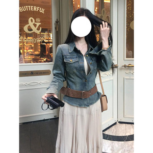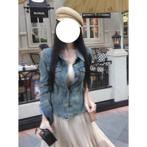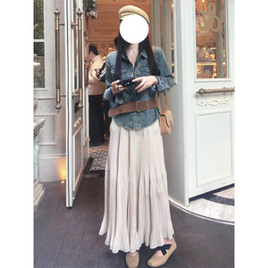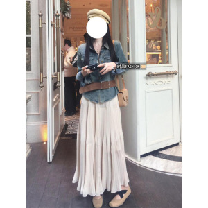 【店铺热销】复古港风牛仔衬衫套装女春季韩系收腰长袖上衣气质温