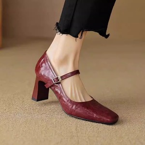 ソフトシープスキン~女性用太ヒールシューズ、フレンチ本革ハイヒール、ワンラインバックル、ミドルヒール、メリージェーンシューズ、パンプス