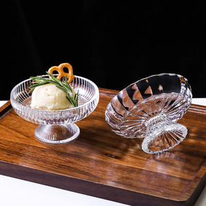 ベース付きの小さい皿の透明なガラスの冷たい飲み物のカップの皿のアイスクリームの皿の高い足のアイスカップのアイスボウルのアイスクリームのコップ