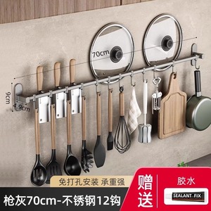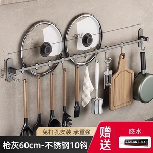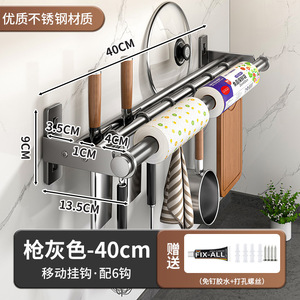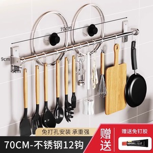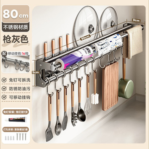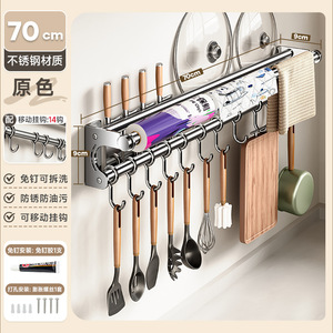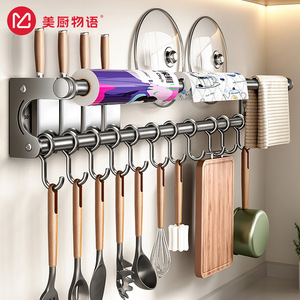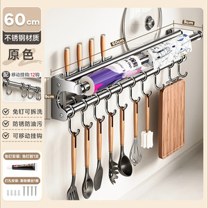 キッチンストーリーキッチンフックラックパンチフリーハンギングロッド壁掛け304ステンレス鋼キッチン用品ペーパータオル収納ラック