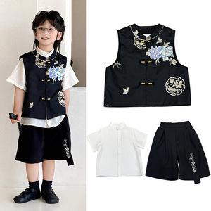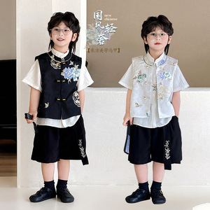 子供の新中国式ベスト2025夏のジャカード盤は刺繍の肩の赤ちゃんの国風唐服の上着のベストを掛けます。