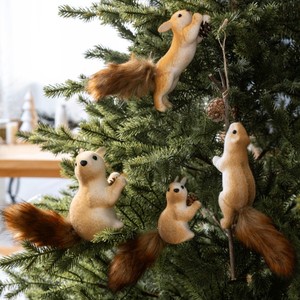 跨境新品韩国仿真松鼠圣诞节装饰挂件圣诞树创意装饰品礼物摆件