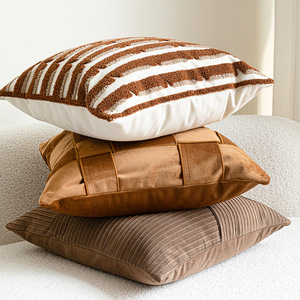 25年春夏新品中古風クッションリビングソファ高級感ブラウンカレー色民泊見本間飾りクッション