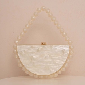 新しいパール調レトロ半円形ビーズアクリルバッグ、シンプルなスクエア型イブニングバッグ、ハンドバッグ(女性用)