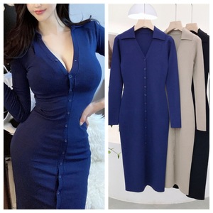 7861 春無地ワンピース 14針ハイツイストコットン 毛玉になりにくい ピュアラペルボタン付き ヒップカバーインナー ロングスカート
