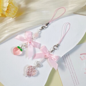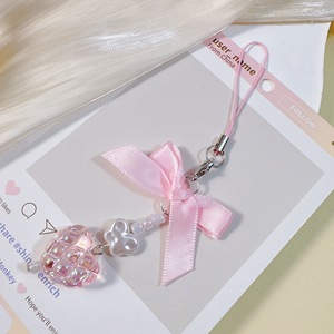新しいデザイン甘いガーリーハートパールリボンバッグペンダント携帯電話ペンダント学生小さなギフト携帯電話チェーン