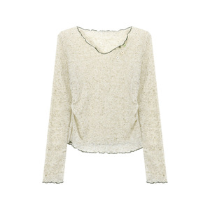 韩系设计感V领微透防晒T恤女装夏季新款小众纽扣薄款修身罩衫上衣