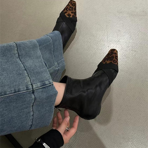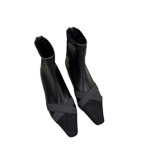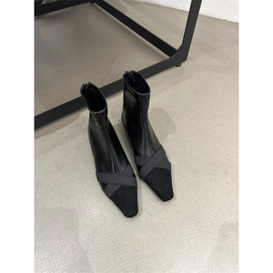 2025 春と秋の新しいファッション多用途ニッチデザインスプライシングショートブーツスクエアトゥファッションブーツレトロロー