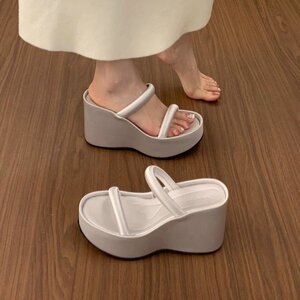ヨーロッパとアメリカのソリッドカラーのウェッジプラットフォームサンダル女性の靴 2025 夏の新スクエアヘッドバックルカジュアルサンダル