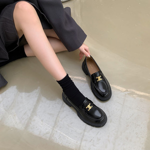 高跟凯旋门厚底乐福鞋女百搭黑色英伦风小皮鞋真皮女软单鞋女鞋子