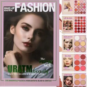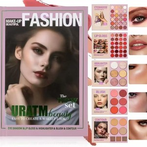 43色のクロスボーダーホットセールアイシャドウパレット、ブック型メイクアップパレット、マット&パール、チーク、コントゥア、ハイライトが一体となったメイクアップブック