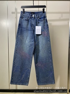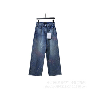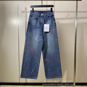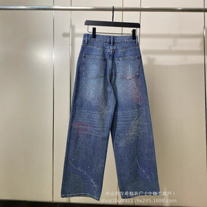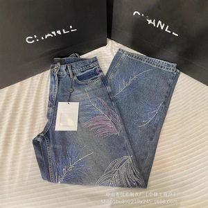 2025新型南油高級婦人服欧品CH小香風羽毛ホットドリル高腰広脚ストレートジーンズ女