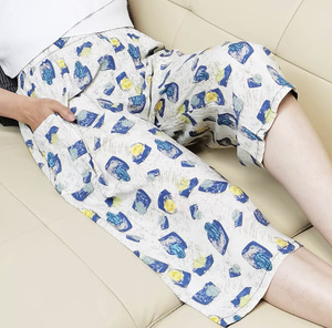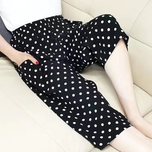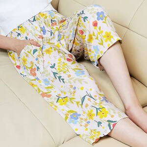 夏の薄い綿のシルクの睡眠のズボンの女性の7分のゆったりした大きいサイズの人工綿の家は綿のビーチのズボンの7分を着ることができます。