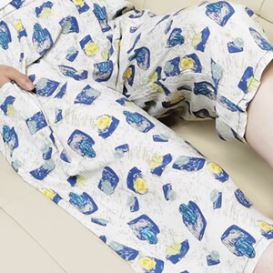コットンシルク7点 - 白黒水玉、ポケット付き
